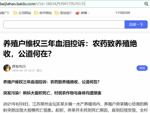 养殖户维权三年血泪控诉:农药致养殖绝收,公道何在?